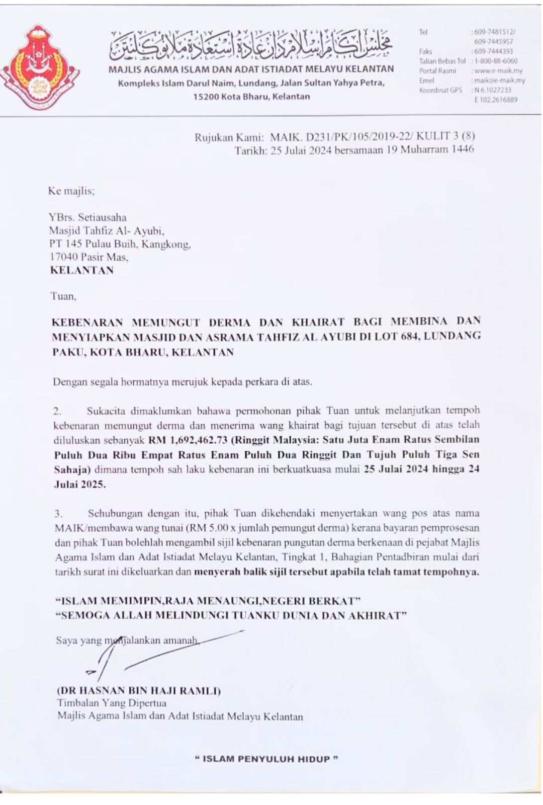 Inilah peluang kita untuk menjadi sebahagian daripada sebuah misi besar iaitu membina Masjid Tahfiz Al Ayubi. Sebuah kompleks masjid dan maahad tahfiz yang bakal menampung 600 orang penghafal al-Quran dan dalam masa yang sama masyarakat beribadah disana.